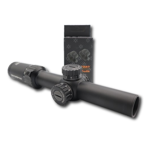 Оптичний приціл зі змінним збільшенням 1-6x. Оснащений прицільною сіткою VTC-CMIL на передньому плані (FFP). Ударостійкий до 750G.