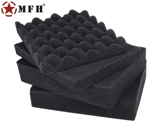 Коробка оснащена губками, які захищають вміст від пошкоджень і відмінно поглинають удари. Набір складається з 4 губок: 2 плоских товстих губок, 1 плоскої тонкої губки і 1 тонкої губки з виступами з одного боку (так звана акуляча щелепа). Товсті губки мають систему надрізів 1 х 1 см, їх можна нарізати відповідно до потреб, що дозволяє будь-яку конфігурацію начинки та оптимальну адаптацію до вмісту, що передається.