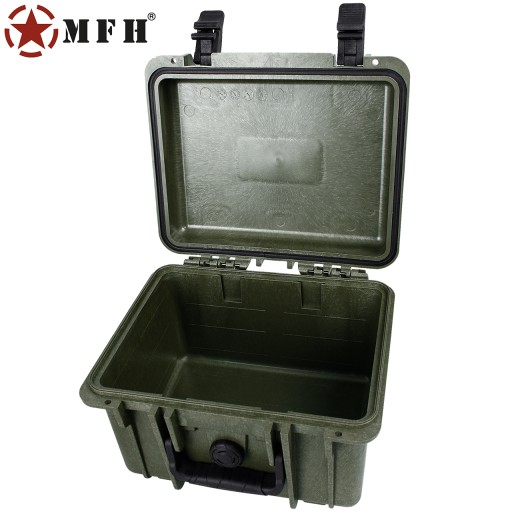 Універсальний водонепроникний транспортний кейс від відомої німецької компанії MFH - це чудовий надійний контейнер для безпечного транспортування обладнання, чутливого до ударів, ударів, екстремальних температур і потребує захисту від води - зброї, електронного обладнання або оптики.