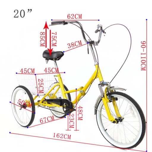 Триколісний велосипед для дорослих, 20-дюймовий складаний велосипед, триколісний велосипед для дорослих, людей похилого віку, жінок, чоловіків, 3-колісний велосипед із кошиком для покупок