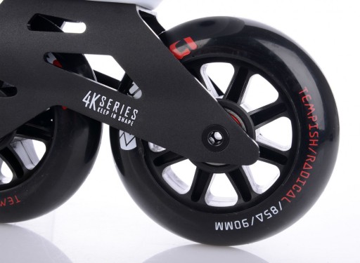 Роликові ковзани EZZA 90 оснащені колесами серії RADICAL - PU casting (PUC), Super Hi-Rebound (SHR), це високоякісні колеса з дуже низьким опором коченню і тривалим терміном служби.