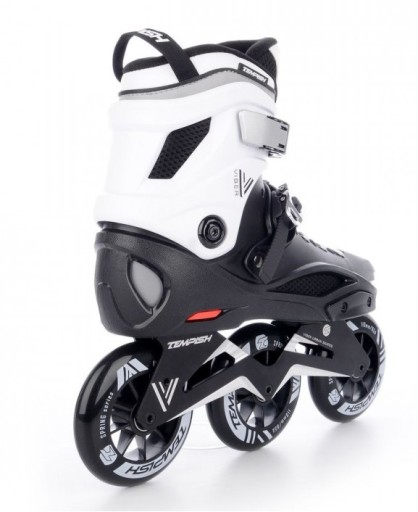 Ковзани TEMPISH VIBER 110 поєднують в собі жорсткий фристайл черевик і швидкість великих 110-мм коліс. Спеціальна універсальна модель, призначена як для коротких маршрутів у місті, так і, завдяки великим колесам, також для трас. Цей скейт підходить для просунутих і досвідчених скейтерів.