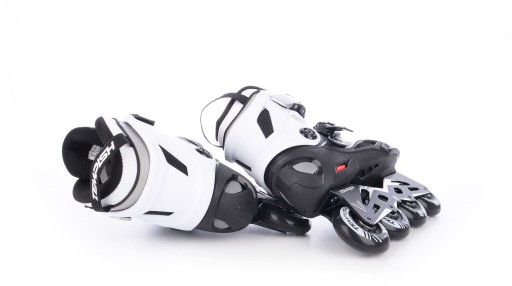 Роликовий ковзан оснащений комбінацією з трьох коліс діаметром 80 мм, завдяки чому ви можете досягати високих швидкостей під час катання. Також можна встановити менші колеса (мінімальний рекомендований розмір 90 мм).