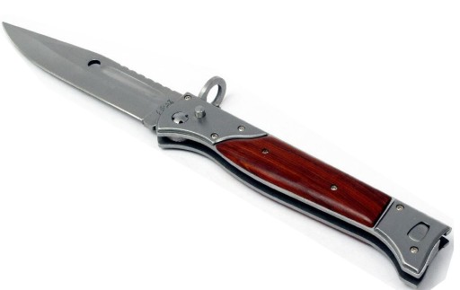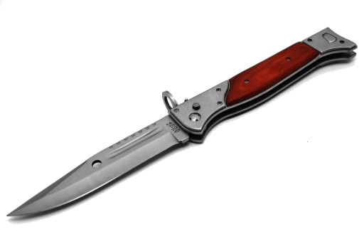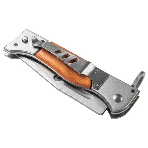 Ніж також має металеву кліпсу, яка дозволяє кріпити ніж на пояс без чохла