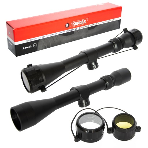Оптичний приціл Kandar зі збільшенням 3-9x і діаметром лінзи 40 мм. Все це укладено в алюмінієву конструкцію, стійку до погодних умов. Приціл ідеально підходить як оптика для страйкбольної копії або пейнтбольних маркерів.