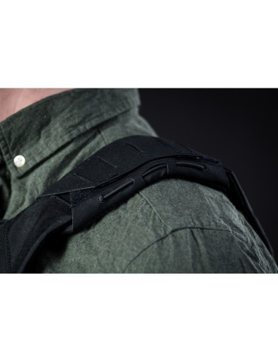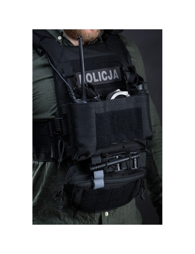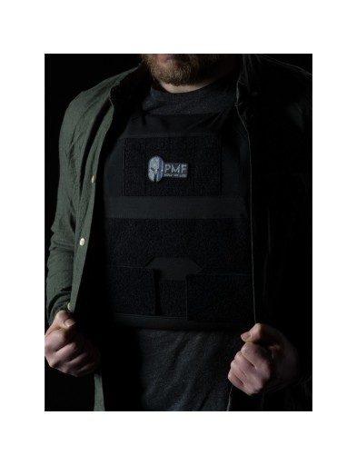 Задня панель була вирізана з ламінату, більша частина поверхні покрита прорізами в системі molle. Липучка по всій ширині дозволяє прикріпити ідентифікаційну нашивку. Регулювання поясів і підтяжок приховали під поверхнею клапана, що дозволило ще більше опустити профіль жилета.