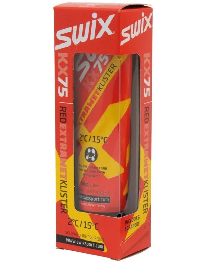 Віск для бігових лиж, також відомий як реактивний віск, м’який т.зв klister, продукт норвезької компанії SWIX, це модель KX75 Red Extra Wet Klister (каталожний номер KX75).