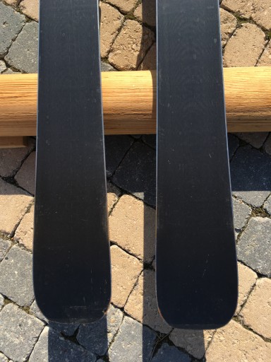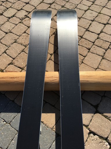 Пропоновані лижі в дуже хорошому візуальному стані; ковзанки в дуже хорошому стані - рівні, без глибоких подряпин і дефектів, цілі, широкі краї. Лижі підготовлені до сезону, тобто заточені та змащені, з нанесеною структурою.