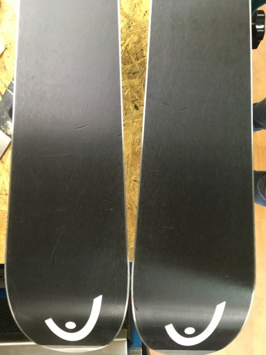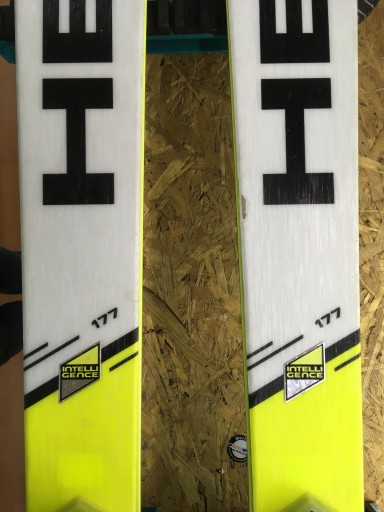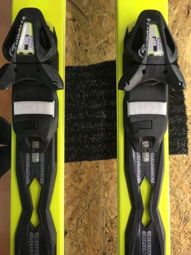 Пропоновані лижі знаходяться в хорошому візуальному стані - на них є ознаки нормального використання (видимі подряпини) і кілька великих потертостей на ламінаті (усі дефекти видно на фотографіях); гірки в ідеальному стані - рівні, без подряпин і дефектів; краї цілі, товсті та рівні. Прив'язки функціональні. Лижі підготовлені до сезону, тобто заточені та навощені.