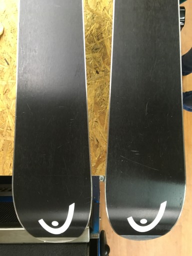 Пропоновані лижі знаходяться в хорошому візуальному стані - на них є ознаки нормального використання (видимі подряпини) і деякі незначні пошкодження ламінату (усі дефекти видно на фотографіях); гірки в ідеальному стані - рівні, без подряпин і дефектів; краї цілі, товсті та рівні. Прив'язки функціональні. Лижі підготовлені до сезону, тобто заточені та навощені.