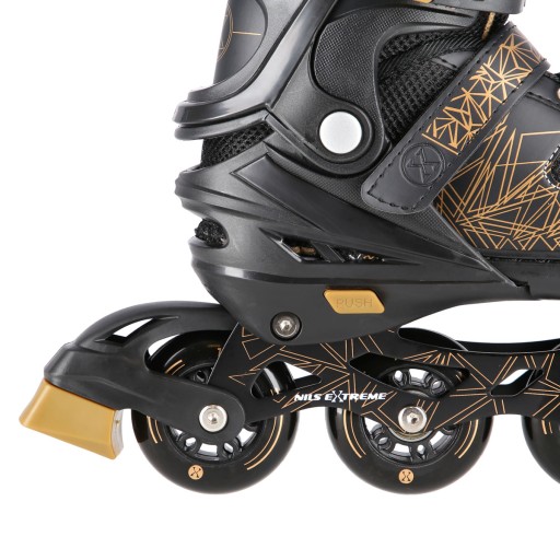Роликові ковзани NH18192 - це справжнє задоволення від катання. Завдяки можливості перенесення додаткового колеса на задню вісь, роликовий ковзан функціонально перетворюється на роликовий ковзан. Таке рішення допоможе самим маленьким фігуристам зробити перші кроки в цьому виді спорту. У свою чергу, установка додаткового колеса на передню вісь перетворює виріб на роликовий ковзан. Ролик оснащений спеціальним алюмінієвим полозом і гальмом, що забезпечує безпеку під час катання. У свою чергу, колеса та підшипники класу ABEC7 дозволяють знизити опір коченню, тобто швидше їздити.