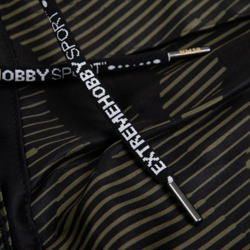 - застібається на липучку. Міцна, гнучка липучка, вбудована в сублімовані вкладки, не подразнює шкіру. Шорти можна відрегулювати на стегнах, контрольовано затягнувши липучку, а потягнувши однією рукою, можна легко розстібнути шорти, щоб зняти шорти зі стегон.