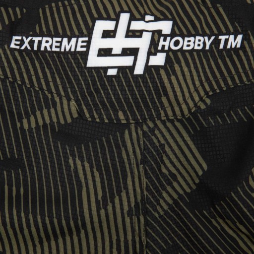 Спортивні шорти є одним із найсучасніших продуктів, розроблених на 100% компанією EH. На додаток до своєї універсальності та дивовижного дизайну, вони також виділяються своєю якістю та довговічністю. Шорти повністю відповідають принципу «Максимальний комфорт з максимальною довговічністю», який роками супроводжує бренд Extreme Hobby. Використана тканина з двостороннім розтягуванням rip-stop запобігає деформації структури та працює відповідно до анатомії тіла.
