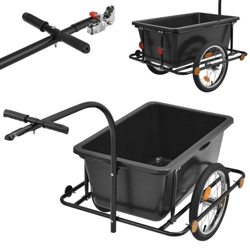 Пневматичний ручний візок зі стійким, знімним 90-літровим пластиковим баком і загальною вантажопідйомністю до 150 кг стане ідеальним партнером для вашої наступної сімейної подорожі. Завдяки велосипедній зчіпці, що входить у комплект, ви також можете використовувати коляску як велосипедний причіп, що дозволяє легко перевозити продукти, садове сміття та інші вантажі. Коляска оснащена світловідбивачами на спицях, з боків і ззаду коляски.