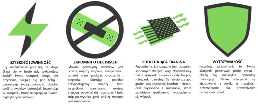 - Standard CushioN Double LayerR - ткані як типові бігові шкарпетки - для типових бігових кросівок, зі стандартним абсорбуючим шаром (подушкою) внизу. Двошарова версія також має протиковзкі накладки на внутрішній стороні носка!