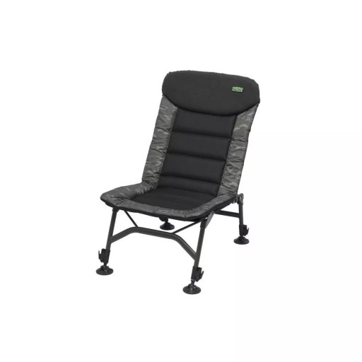 Міцне та зручне сталеве крісло з регульованими ніжками, запобіжниками та великими грязьовими накладками. Має флісову подушку. Привабливий дизайн з оригінальним камуфляжем Madcat Camofish.