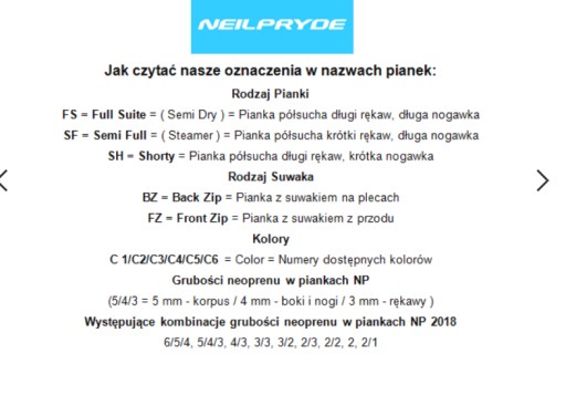 - FS = Повний комплект = (Напівсухий) = Напівсухий гідрокостюм з довгим рукавом, довгими штанинами