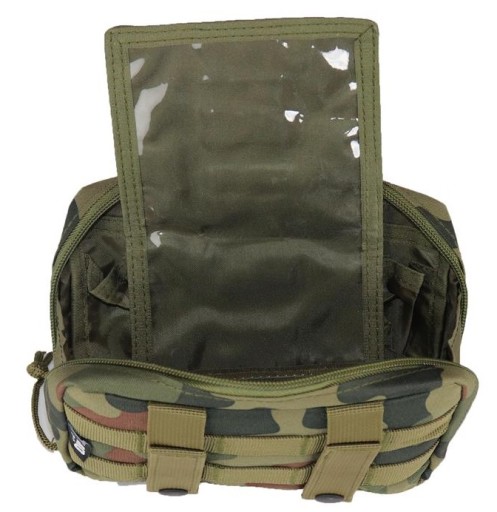 - Знімна панель з ідентифікаційним віконцем для карти або документів, з іншого боку має еластичну стрічку для картриджів.