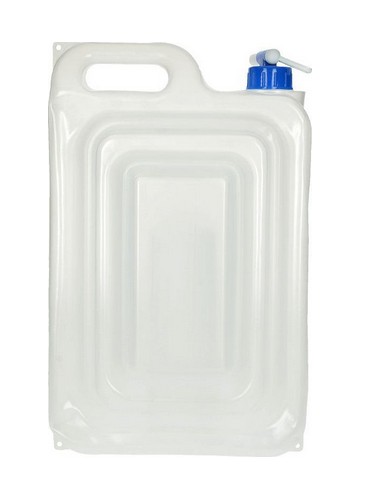 Плоский портативний контейнер для води ідеально підходить для походів. Резервуар для води виготовлений з поліетилену, що робить його дуже легким, а ручка дозволяє легко транспортувати. Має гвинтовий ковпачок і кран, що закривається. При наповненні контейнер розширюється, а коли порожній, він дуже плоский і його легко скласти. Завдяки об’єму 13 л він на короткий час покриває потреби кемпінгу у воді.