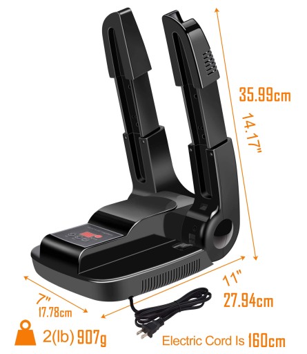 *** Складна конструкція *** Складана на 90 градусів конструкція з регульованим кронштейном, ви можете регулювати відстань до сушарки за допомогою двох великих розтягнутих кронштейнів [висота 27 см - 35,99 см], сушарка для гріння черевиків ідеальна для будь-якого походу чи подорожі з рюкзаком. Розміри в складеному вигляді: 27,4 см у довжину x 17,78 см у ширину x 8,89 см у висоту, вага 907 г.