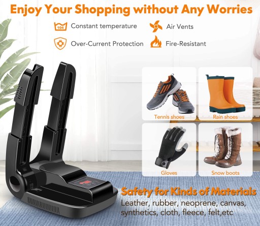 *** Швидке сушіння за допомогою інтелектуального таймера *** Встановіть різний час роботи для типів взуття. Легко зменшити споживання енергії. Завдяки постійній температурі 104-142 (F) [40-60 C] ці сушарки для взуття швидко висушать ваше взуття за допомогою теплового вентилятора.