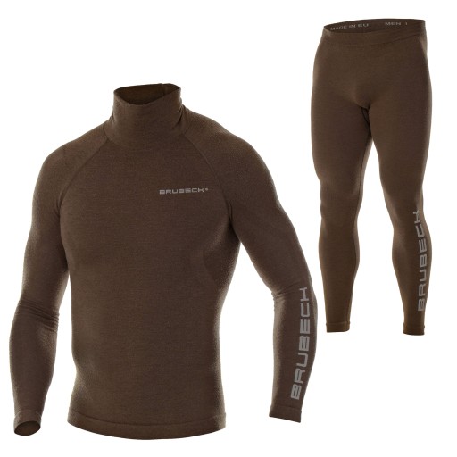 Чоловічий термокомплект Brubeck RANGER WOOL - це найякісніша тепла термоактивна білизна, призначена для використання в умовах низьких або дуже низьких температур. Вона виготовлена з найкращого в світі натурального матеріалу - мериносової вовни. Він надзвичайно м'який, ніжний на дотик, не кусається і не дряпається. Мериносова шерсть також дуже тонка - її волокна мають лише 18 мікрон - це більш ніж у чотири рази менше середньої товщини людської волосини! Чим тонше і щільніше руно овечої вовни, тим краще її теплоізоляційні властивості. Волокна, які використовуються в колекції RANGER WOOL від BRUBECK, є найблагороднішою різновидом вовни австралійського мериноса. Завдяки високій еластичності вовни білизна не мнеться і не виштовхується. Він ідеально прилягає до тіла, ніжний до шкіри та не залишає слідів завдяки манжетам, що не тиснуть, і плоским швам.