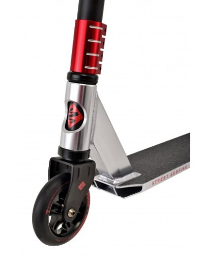 Stunt Scooter Ripper - це надзвичайно стійкий і міцний самокат, призначений для виконання найскладніших трюків у скейт-парках і катання на краю. Він виготовлений з легкого та надзвичайно міцного, стійкого до деформацій алюмінію, тому прослужить довгі роки. Зручні ручки, нековзка поверхня і міцні колеса забезпечують впевненість і стабільність під час водіння. Однак його унікальна графіка сподобається кожному фрірайдеру!
