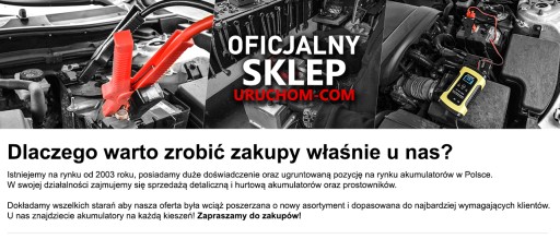 Акумулятори Uruchom® Kamper - це зручне мобільне джерело енергії, оснащене зручною складною ручкою для зручного перенесення. Саме це визначає їх високу якість і широкий спектр застосування: