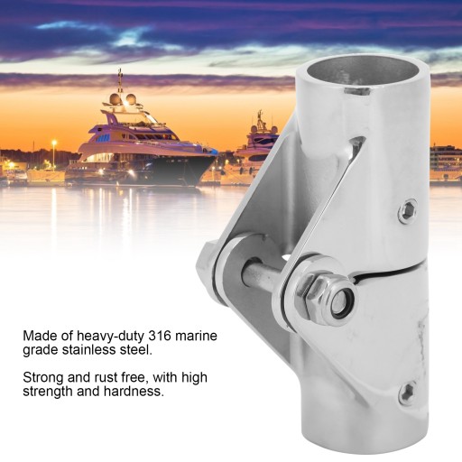Особливість:1. Виготовлений із міцної морської нержавіючої сталі 316, він міцний і не іржавіє, має високу міцність і високу твердість.2. Завдяки стійкості до подряпин, стирання, стійкості до окислення та старіння, він довговічний.3. Він може складати дві секції труби на 180 градусів, що дуже зручно у використанні.4. Легко встановлювати та знімати, без додаткових налаштувань, свердління чи зварювання. 5. Підходить для всіх видів човнів, шарнірне з’єднання труб багаторазове та екологічне.
