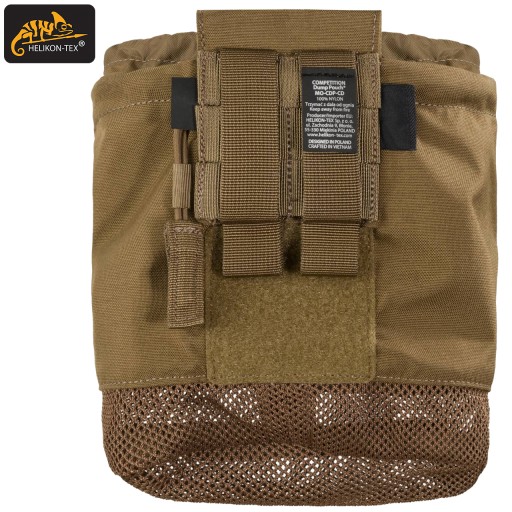 COMPETITION Dump Pouch® є частиною набору COMPETITION. Кишеня призначена в основному для кидання туди порожніх магазинів під час змагань з динамічної стрільби. Він легко вміщає кілька гвинтівкових або пістолетних магазинів. Жорсткий регульований комір дозволяє легше кидати журнали в сумку навіть у стресовій ситуації. Сітчасте дно запобігає накопиченню піску та бруду в сумці. Кишеня досить велика, щоб успішно служити імпровізованою універсальною кишенею для навушників, рукавичок, таймера тощо. Сумка сумісна з системою MOLLE/PALS, але також може бути встановлена на поясі шириною до 45 мм.