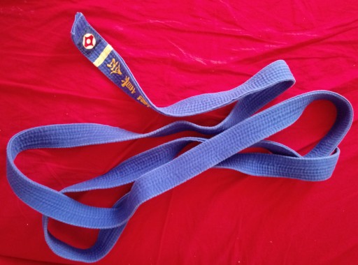 Ширина приблизно 4 см, оздоблений бавовняним матеріалом. На поясі вишита ідеограма «Кіокушинкай». Нашивка Канку.