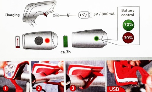 Лампа має вбудований акумулятор на 1200 мАг. Легка зарядка, проста і міцна установка роблять його ідеальним продуктом для кожного велосипедиста.