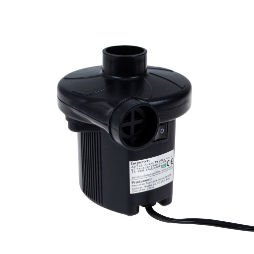 Електричний насос живиться від електричної розетки. Він призначений для надування і здування різних предметів, наприклад, м'ячів, матраців, надувних подушок, понтонів і т. д. Завдяки компактній конструкції він не займає багато місця, тому його легко брати з собою в подорож.