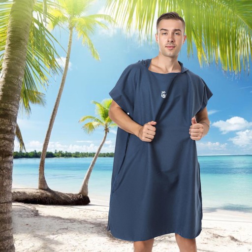 Пончо для серфінгу з мікрофібри, змінний халат, м’який гідрокостюм для плавання, темно-синій