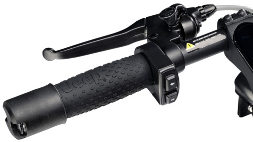 4 режими водіння також є перевагою: ECO, DRIVE, SPORT і пішохідний режим. Круїз-контроль: підтримка швидкості руху. Він активується після підтримки тієї самої швидкості протягом кількох секунд. Крім того, Bluetooth і доступ до програми Jeep e-mobility, яка дозволяє керувати скутером зі смартфона.
