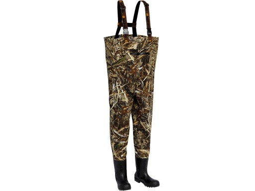 Вейдерси виготовлені з дуже міцного матеріалу з унікальним камуфляжем MAX5. Ремені виконані в H-положенні, що запобігає їх спаданню з плечей, а регулювання джгутів дозволить адаптувати їх під власні потреби. Вейдерс має передню кишеню, яка захищена від води. Взуття має підкладку з неопрену зсередини для підтримки відповідної температури всередині, має відповідну профільовану підошву для стабільного пересування по будь-якій місцевості. Вейдерси також оснащені внутрішніми наколінниками для захисту в критичній точці. Специфікація продукту:
