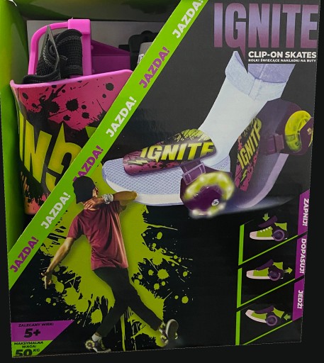 З роликовими ковзанами Ignite Clip-On Skates миттєво перетворите своє взуття на роликові ковзани та насолоджуйтесь катанням та задоволенням! Колеса мають підсвічування за спеціальною технологією, завдяки якій вони світяться під час руху, створюючи приголомшливий ефект!