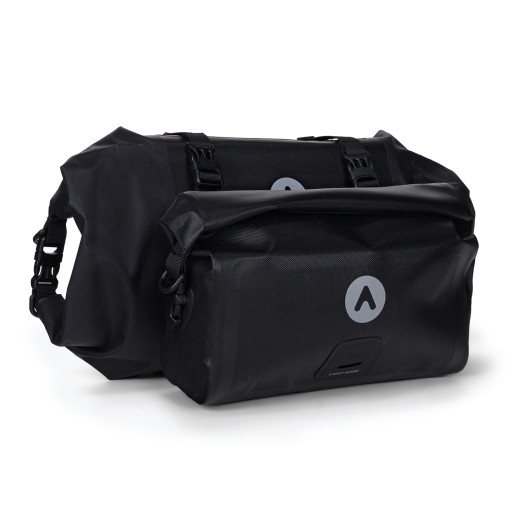 У набір велосипедної сумки Attabo входять дві моделі, які можна використовувати як окремі сумки на кермо або як сумку через плече зі знімним ременем. Другу, меншу сумку, залежно від ваших потреб, можна використати для організації простору у більшій сумці або окремо закріпити на кермі.