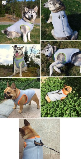 Просто опустіть жилет у холодну воду, відіжміть його, одягніть собаку, і готово! Коли з нього випарується вода, замочіть його ще раз.