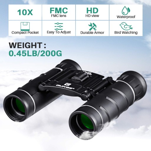 Маленький кишеньковий бінокль QUNSE, спостереження за птахами 10 X 25, компактний складаний бінокль із водонепроникністю для дорослих/дітей, подорожей, огляду визначних пам’яток/полювання