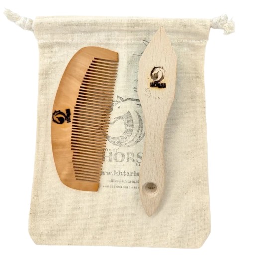 Набір щіток для коней хобі - стильна сумка, наповнена сіном разом із щіткою та гребінцем.