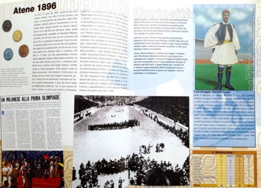 : Гарно виданий альбом (великий формат, крейдяний папір, тверда обкладинка) італійським видавництвом Anniversary Books, яке спеціалізується на представленні фотографічної, документальної та музейної документації, пов’язаної з важливими подіями та спортивними змаганнями. У цьому альбомі автори представили маловідомі або раніше невідомі фотографії, ілюстрації, інформацію та пам’ятні речі, пов’язані з літніми Олімпійськими іграми 1896-2008 років. Кожне видання Ігор представлено в окремому розділі, який включає, серед іншого: список кількості країн та учасників, найвищий медальний залік, список італійських медалістів Ігор та різні цікаві факти, інформація, фотографії та скани архівних газет і плакатів. Книга написана італійською мовою.
