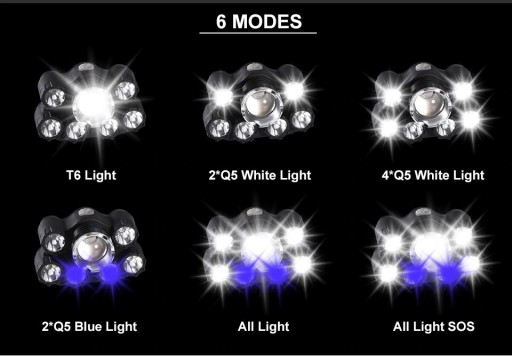 - 8 світлодіодних налобних ліхтарів ZOOM CREE T6