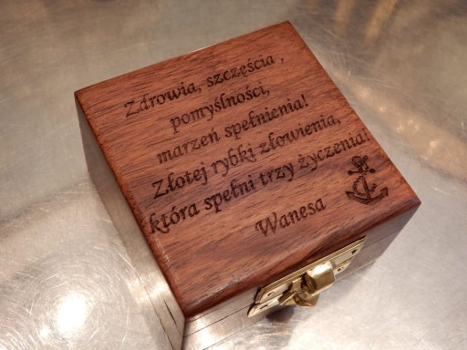 Крім того, дерев'яна скринька, така як на фото, на якій ми можемо розмістити вашу присвяту. Коробка виготовлена вручну, тому не для "аптекарів", можливі дрібні вм'ятини чи неточності, які на цілісність не впливають. Це може стати чудовою ідеєю для оригінального подарунка.