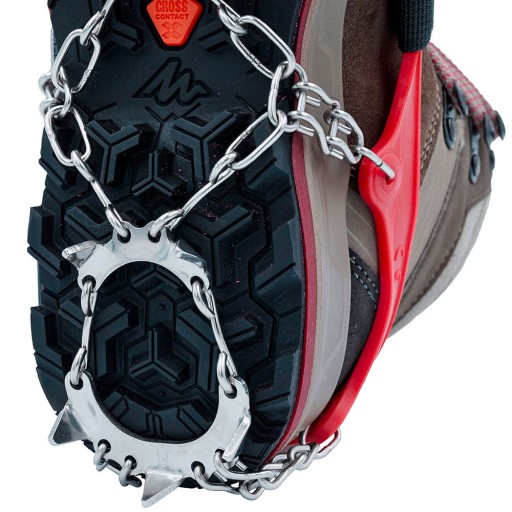 Ці кошики оснащені 13 зубцями і системою ланцюгів, які ефективно забезпечують належне зчеплення під час ходьби, ходьби або вільного бігу. Весь виріб виготовлено з нержавіючої сталі та гнучкого матеріалу, який стійкий до великих перепадів температур. Ця еластична гума дозволяє швидко одягати ручку і знімати її з взуття. Весь процес приємний і займає всього кілька секунд.
