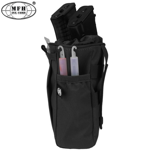 MOLLE DUMP BAG від MFH — універсальний контейнер для порожніх магазинів або іншого спорядження. Це значно прискорює та полегшує організацію журналів без необхідності складати використані в сумки. Основне відділення сумки закріплено регульованим коміром, щоб вміст не випадково випав.