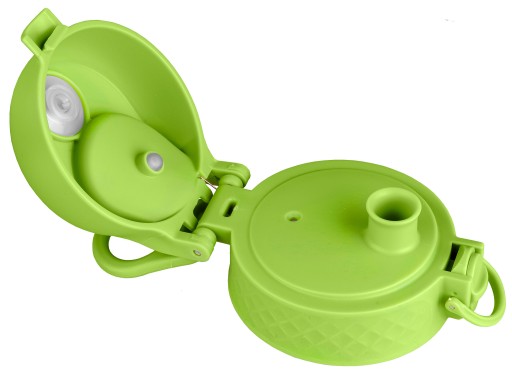 Кришка дозволяє підтримувати мундштук в гігієнічності та чистоті. Пружини відкривають кришку при натисканні пальцем на курок замка. Ви можете відкрити кришку пляшки однією рукою.