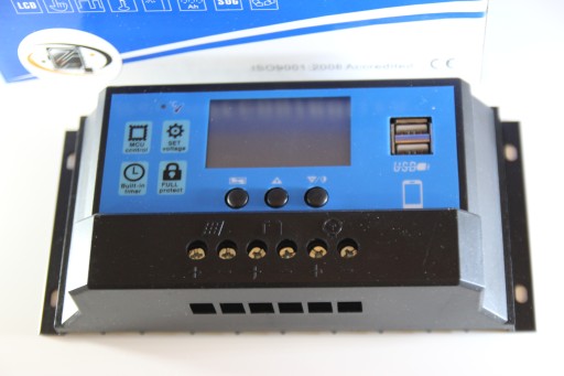 Сонячний регулятор ШІМ і контролер заряду для фотоелектричних панелей 12/24 В з РК-дисплеєм і двома портами USB.