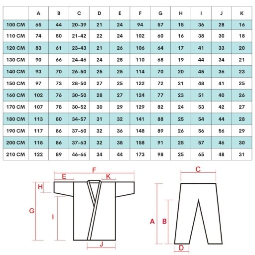 Примітка. Вибираючи розмір, пам’ятайте, що під час перших кількох прань кімоно зменшиться приблизно на 8% у довжину та на 1-2% у ширину, що є нормальним і правильним. Про це варто пам'ятати, купуючи і вибираючи кімоно на розмір більше. Це дозволить власнику кімоно уникнути ситуації, коли кімоно після кількох прань виявиться замалим.