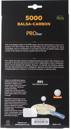 Виготовлений з найкращих матеріалів: 7-шарова фанера з прокладками з карбону та BALSA, губка товщиною 2,2 мм, накладки агресивні (Atemi IPPON).